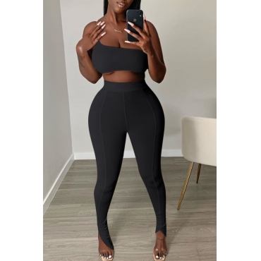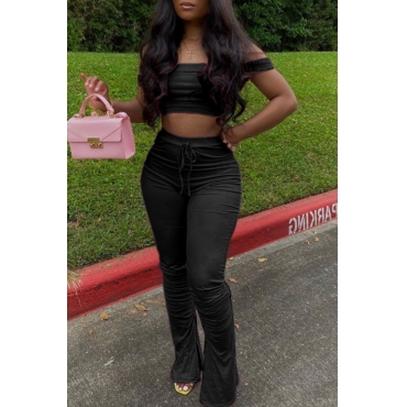 Lovely Casual Dew Shoulder Black Two-piece Pants Set