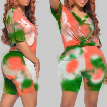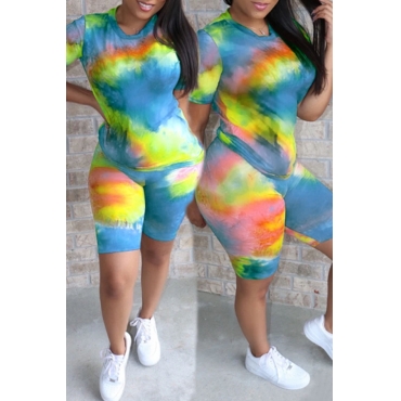 Lovely Casual Tie Dye Green Two Piece Shorts Set