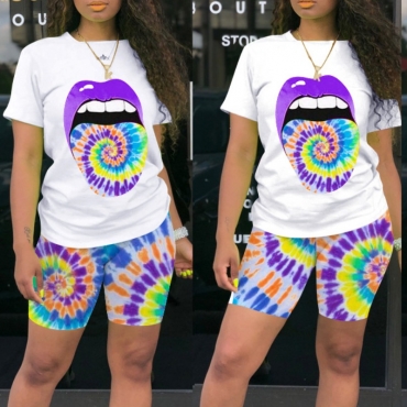 Lovely Leisure Lip Print Purple Two-piece Shorts Set