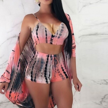 Lovely Sexy Tie-dye Print Pink Two-piece Shorts Set
