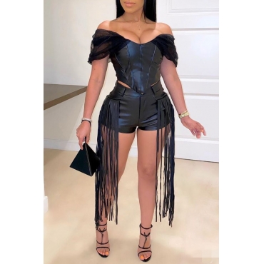 Lovely Stylish Tassel Design Black Two-piece Shorts Set