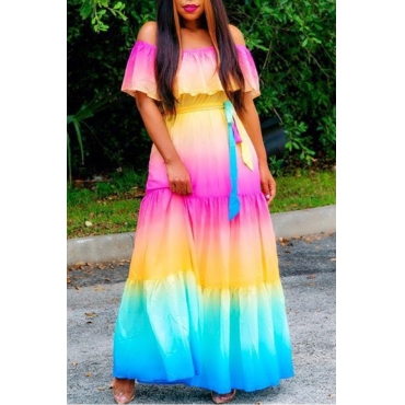 Lovely Casual Off The Shoulder Print Patchwork Multicolor Maxi Dress