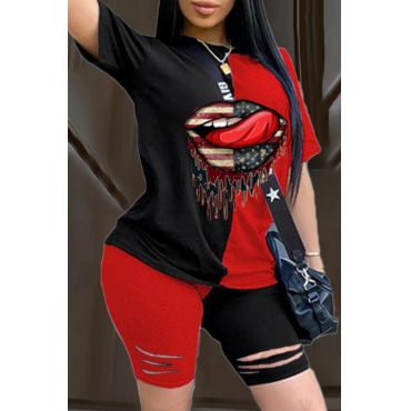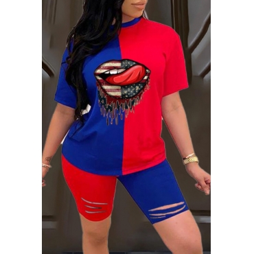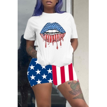 Lovely Independence Day Casual Print Patchwork Multicolor Two-piece Shorts Set