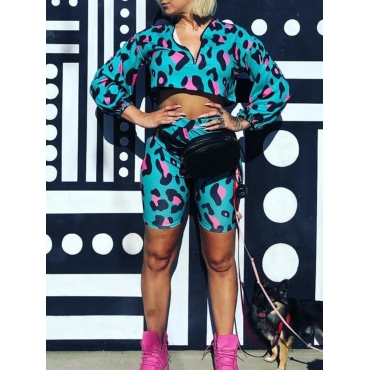 Lovely Casual Leopard Print Two-piece Shorts Set