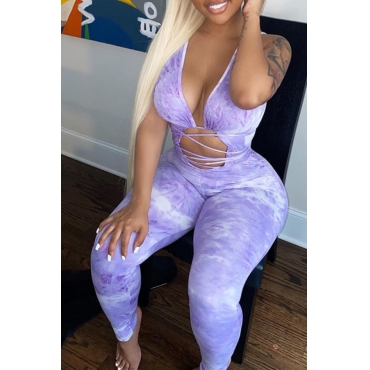 Lovely Sexy Deep V Neck Hollow-out Purple One-piece Jumpsuit