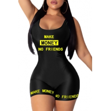 Lovely Leisure Letter Print Black One-piece Romper