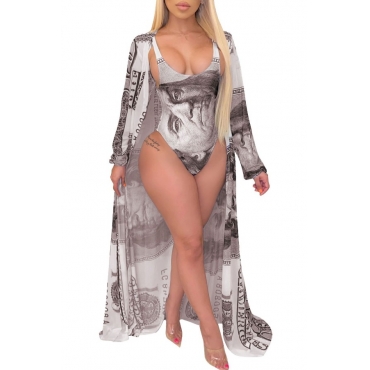 Lovely Print Brown One-piece Swimsuit(With Cover-up)