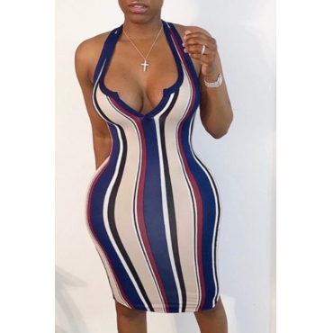 Lovely Casual Striped Navy Blue Knee Length Dress