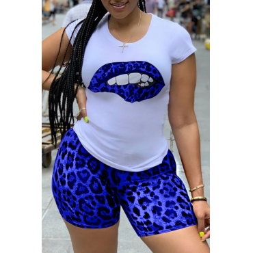 Lovely Casual Print Blue Two-piece Shorts Set