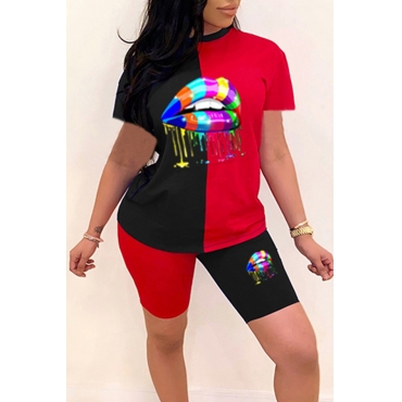 Lovely Casual Lip Print Red Two-piece Shorts Set
