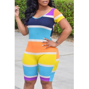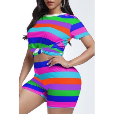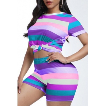 Lovely Casual Striped Purple Two-piece Shorts Set