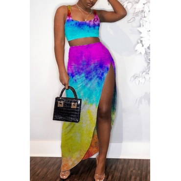 lovely Stylish Tie-dye Blue Two-piece Skirt Set