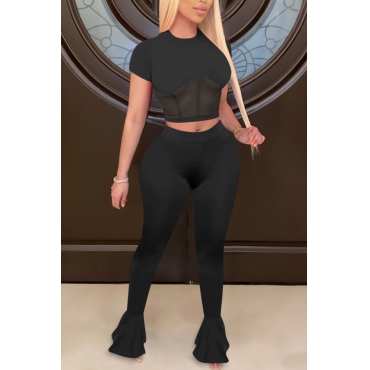 Lovely Stylish Patchwork Black Two-piece Pants Set
