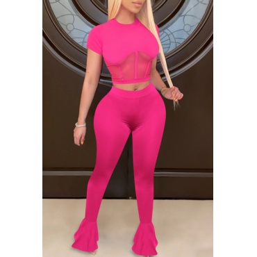 Lovely Stylish Patchwork Rose Red Two-piece Pants Set