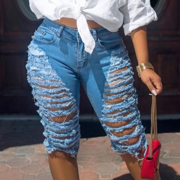 Lovely Trendy Hollow-out Deep Blue Shorts