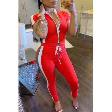 Lovely Sportswear Patchwork Red Two-piece Pants Set