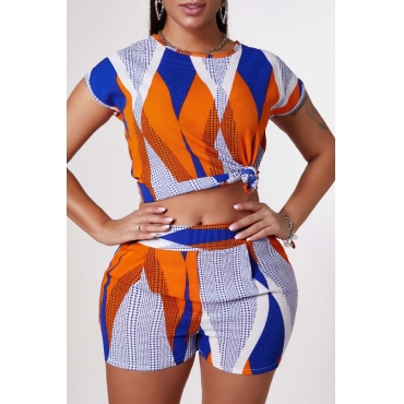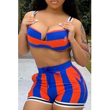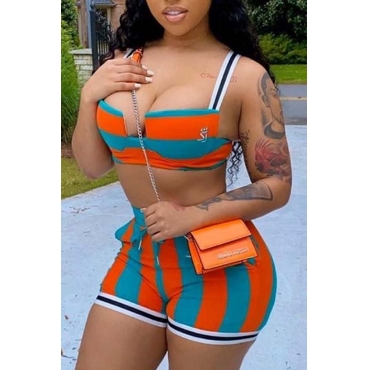 Lovely Sexy Striped Orange Two-piece Shorts Set
