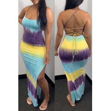 Lovely Sexy Tie-dye Backless Multicolor Ankle Length Dress
