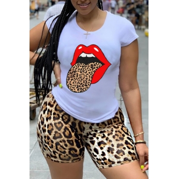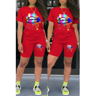 Lovely Casual Lip Print Red Two-piece Shorts Set