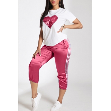 Lovely Leisure Patchwork Pink Two-piece Pants Set