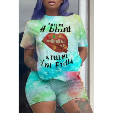 Lovely Casual Lip Print Green Two-piece Shorts Set