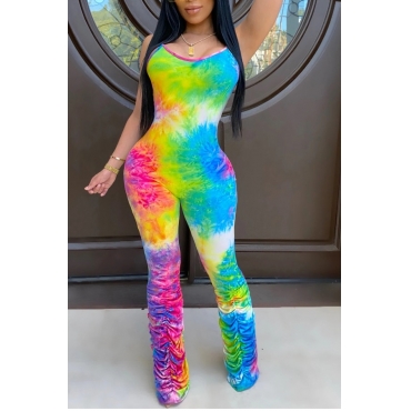 Lovely Sexy Tie-dye Multicolor One-piece Jumpsuit