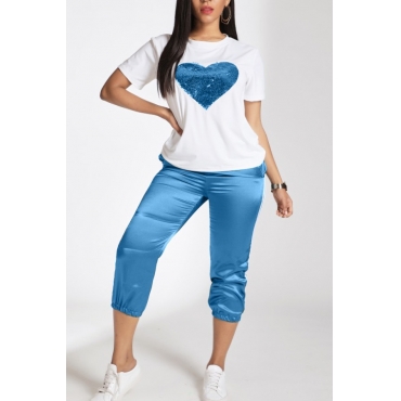 Lovely Leisure Patchwork Blue Two-piece Pants Set