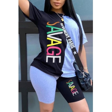 Lovely Casual Patchwork Black Two-piece Shorts Set