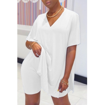 Lovely Casual V Neck Basic White Two-piece Shorts Set