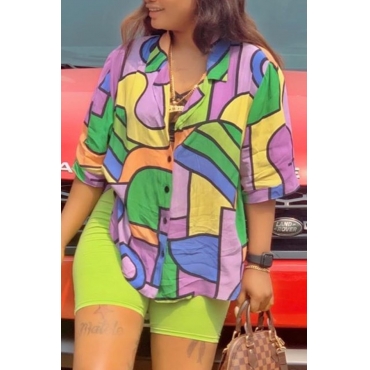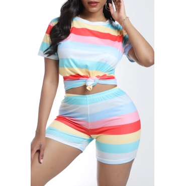 Lovely Casual Print Multicolor Two-piece Shorts Set