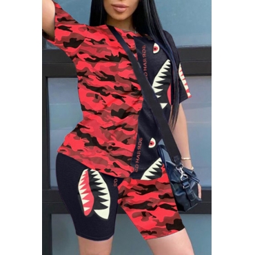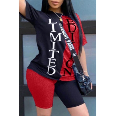 Lovely Casual Letter Print Red Two-piece Shorts Set