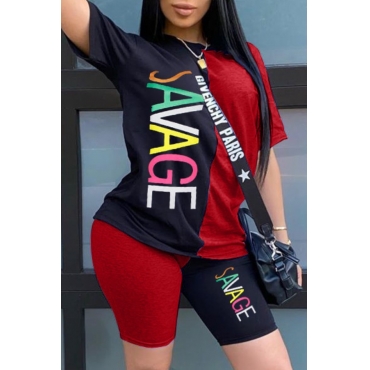 Lovely Casual Patchwork Red Two-piece Shorts Set