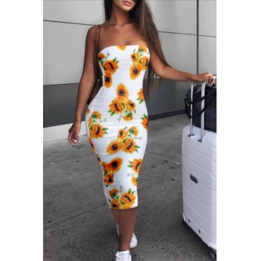 Lovely Casual Sunflower Print Yellow Ankle Length Dress