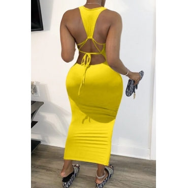 Lovely Sexy Backless Yellow Ankle Length Dress