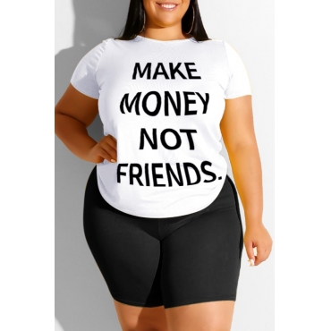 Lovely Leisure Letter White Plus Size Two-piece Shorts Set