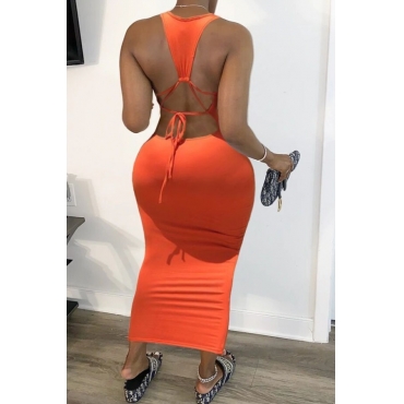 Lovely Sexy Backless Orange Red Ankle Length Dress
