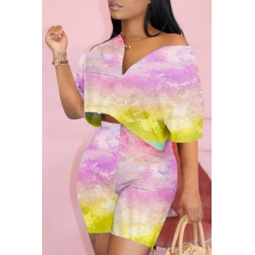 Lovely Casual Tie-dye Light Pink Two-piece Shorts Set