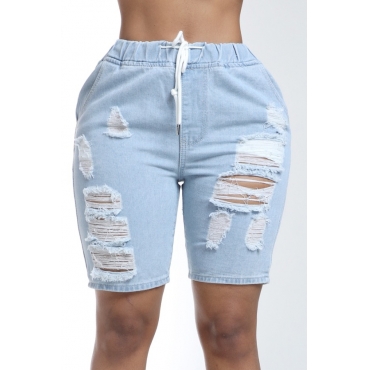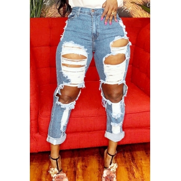 Lovely Stylish Hollow-out Babye Blue Plus Size Jeans