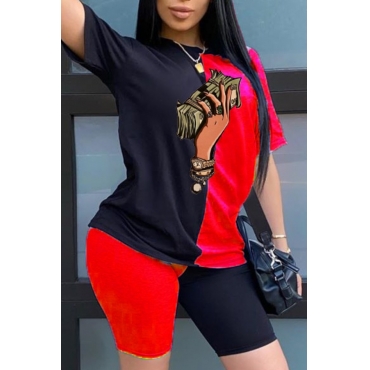 Lovely Casual Print Patchwork Red Two-piece Shorts Set