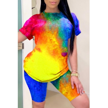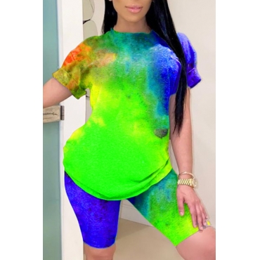 Lovely Leisure Tie-dye Green Two-piece Shorts Set