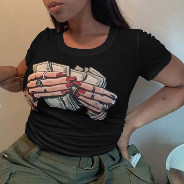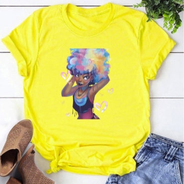 Lovely Leisure O Neck Cartoon Print Yellow T-shirt