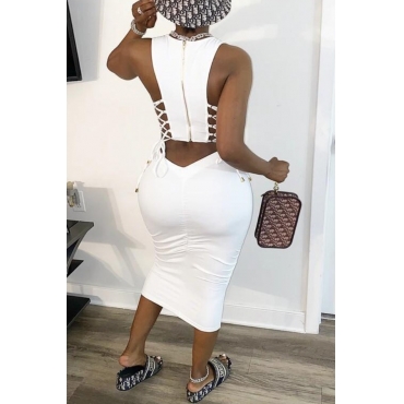 Lovely Leisure Bandage Design White Mid Calf Dress