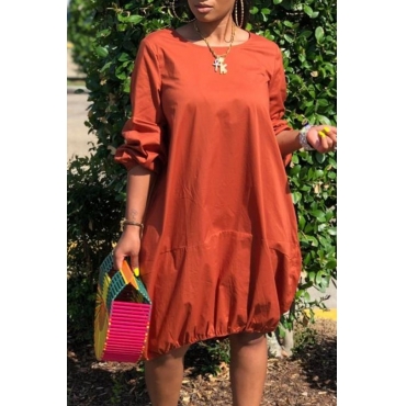 Lovely Casual O Neck Loose Brown Knee Length Dress