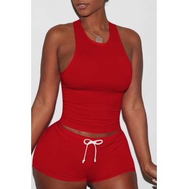 Lovely Sportswear Lace-up Red Two-piece Shorts Set
