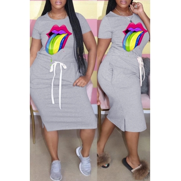 Lovely Casual Lip Print Light Grey Knee Length Dress