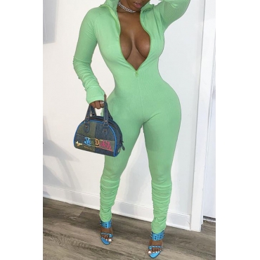 Lovely Stylish Zipper Design Green One-piece Jumpsuit
