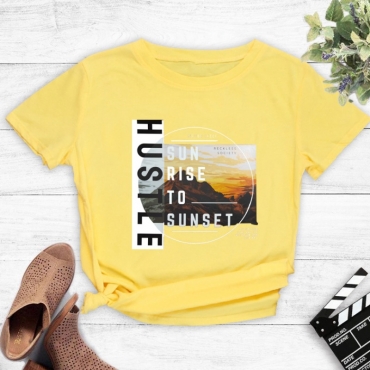 Lovely Leisure O Neck Letter Print Yellow T-shirt