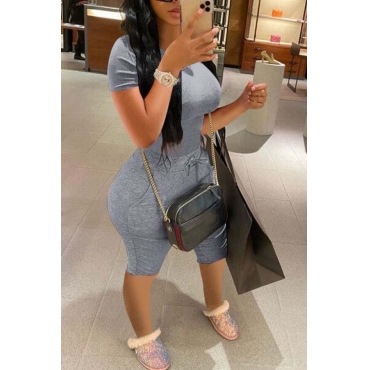 Lovely Sexy Fold Design Grey One-piece Jumpsuit