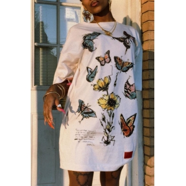 Lovely Leisure Butterfly Print White Knee Length Dress