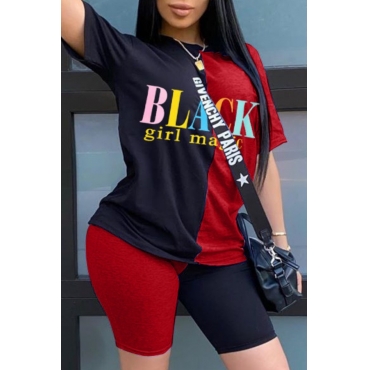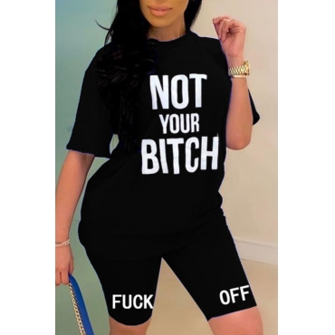 Lovely Leisure Letter Print Black Two-piece Shorts Set